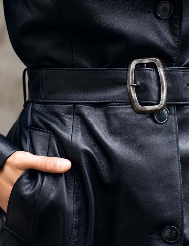 Cuir d'agneau souple et agréable , fente d'aisance à l'arrière , deux poches extérieures .