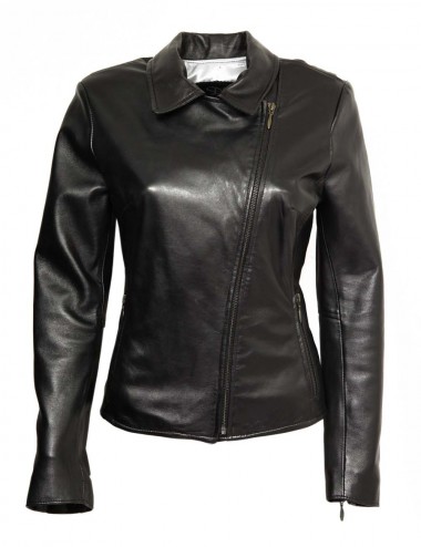 Blouson "biker" sobre et revisité, confectionné en cuir d'agneau haut de gamme.