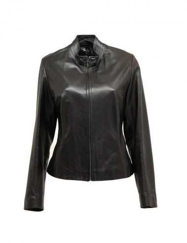 Blouson cuir véritable agneau noir