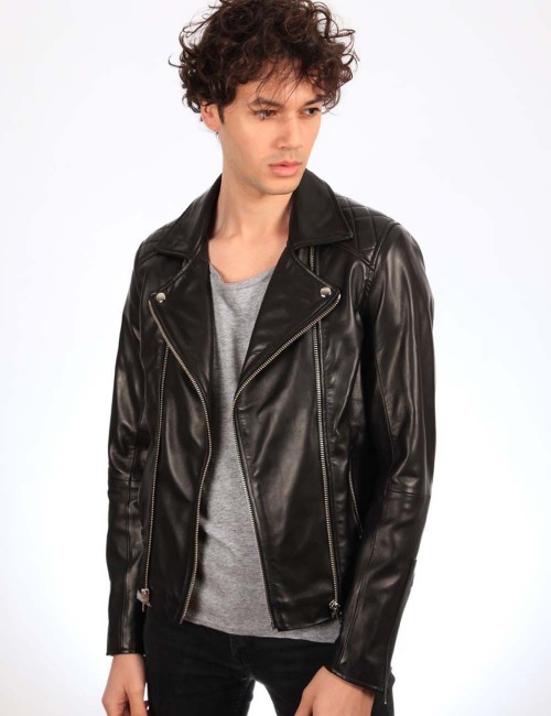 Blouson en cuir d'agneau revisité avec double zip .