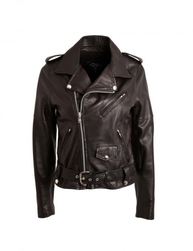 Blouson en cuir esprit biker avec ceinture .