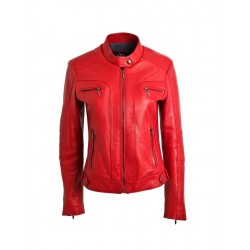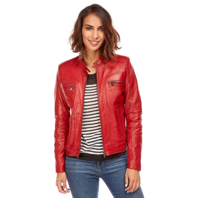 Blouson en cuir d'agneau souple rouge